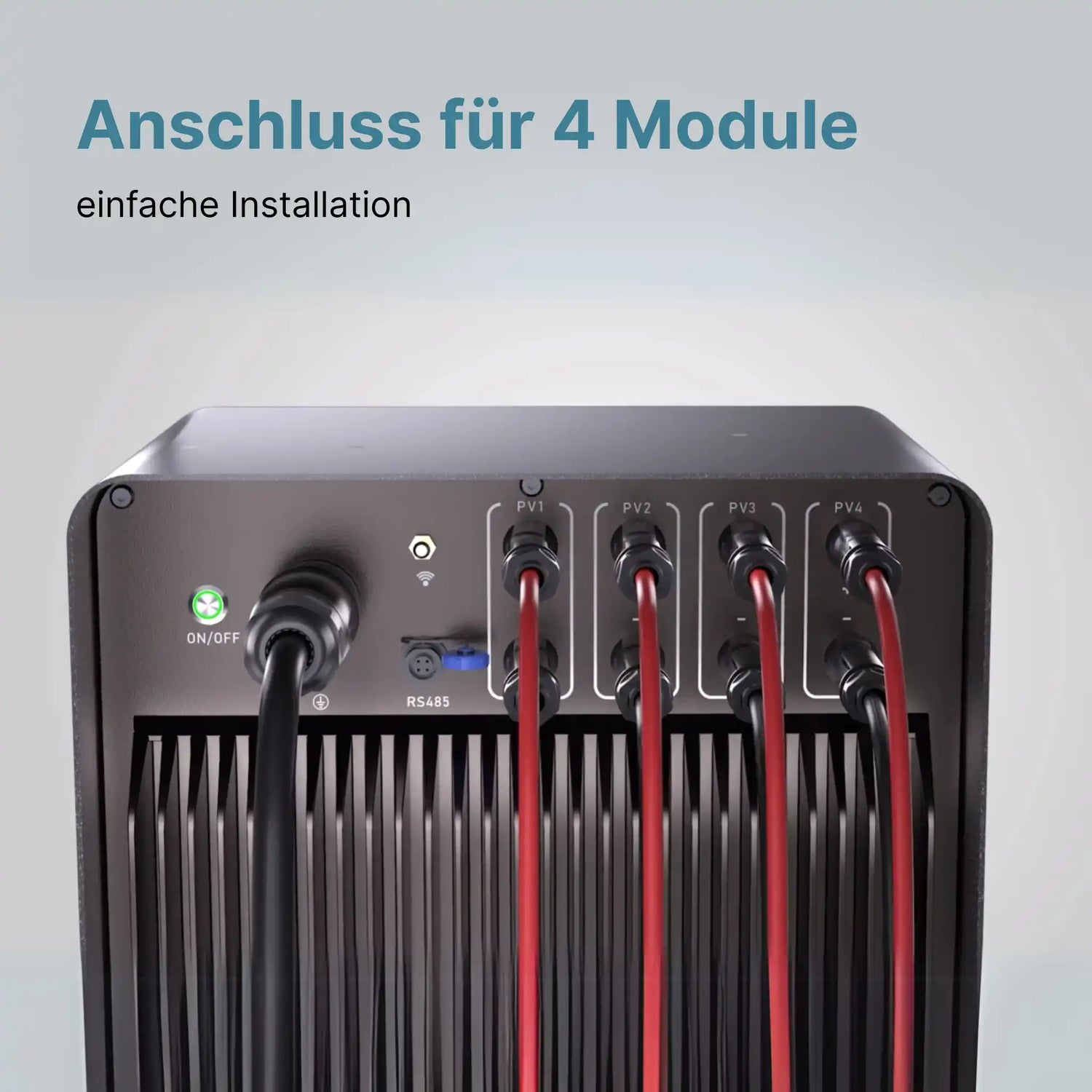 Der Jupiter C speichert die von Ihren Solarmodulen erzeugte Energie (bis zu 2000W Eingangsleistung) und speist sie bedarfsgerecht mit bis zu 800W in Ihr Hausnetz ein. Die Einspeiseleistung können Sie dabei flexibel an Ihre Bedürfnisse anpassen – entweder manuell oder automatisch über den integrierten Smart Meter.